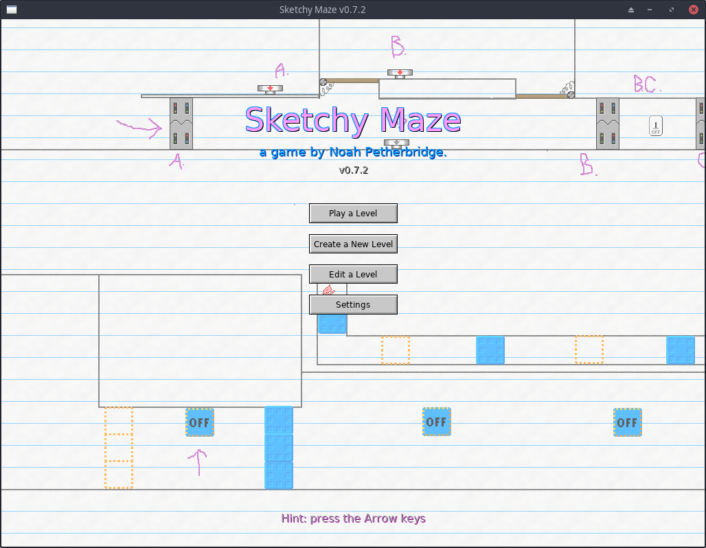 Sketchy Maze is a drawing-based maze game themed around hand-drawn maps on paper. You can draw a level for a 2D platformer game, drag-and-drop "doodads" such as buttons and doors into your level, play it and share your levels with others.